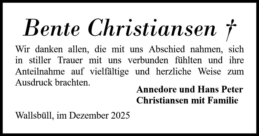 Wir möchten hiermit unser aufrichtiges Beileid aussprechen. Es ist schwer zu verstehen, warum Bente so früh sterben muss.
