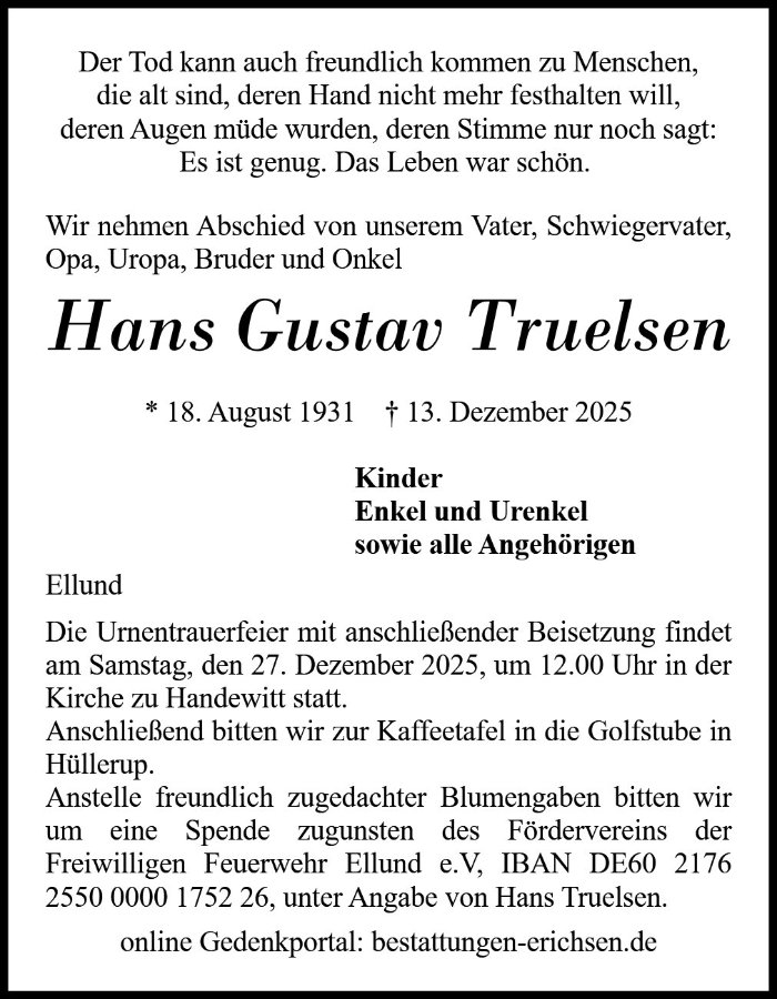 gestorben am 13. Dezember 2025 in Handewitt