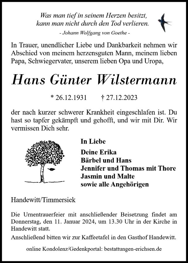 geboren am 26. Dezember 1931 in Timmersiek
