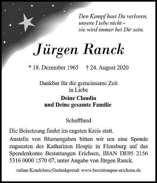 wir haben erst zufällig erfahren dass du Jürgen verloren hast. Obwohl wir uns seit Jahren nicht gesehen haben, vergessen wir unsere Freundschaft nicht und wir sind noch da, so fast um die Ecke ;-).