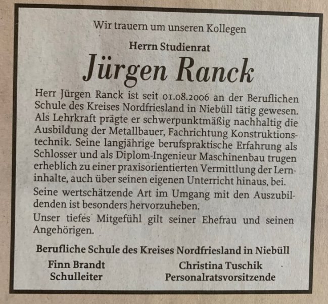 Jürgen Ranckgestorben am 24. August 2020
