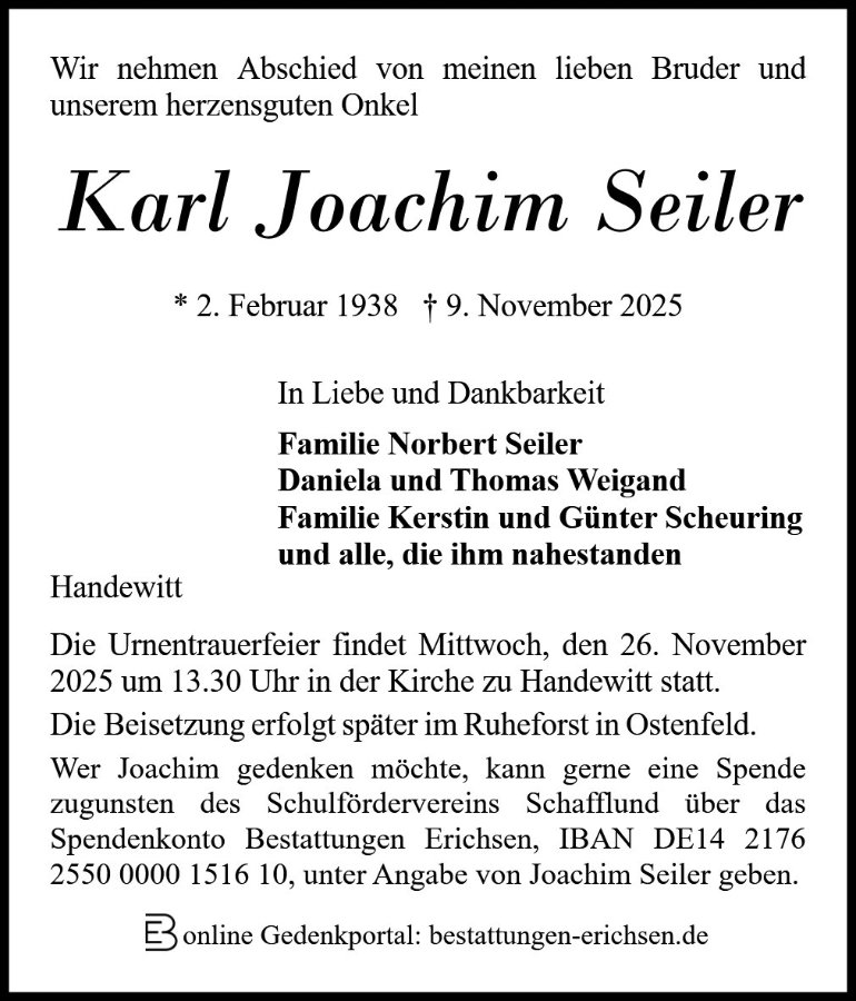 Karl Johann Seilergestorben am 9. November 2025