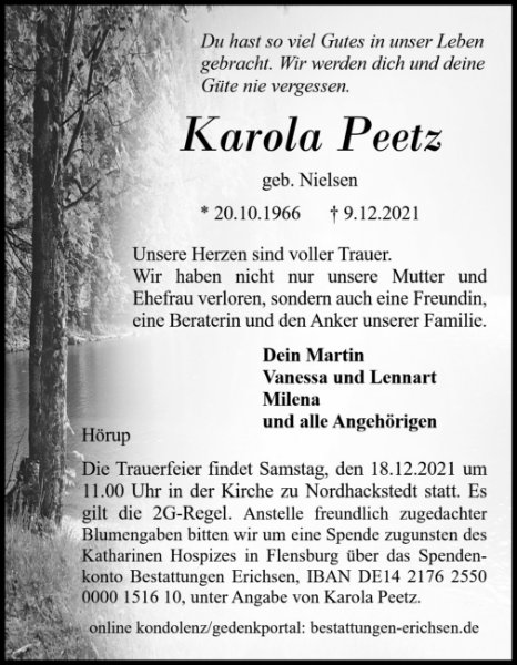 Karola Peetzgestorben am 9. Dezember 2021